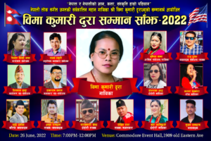हो यिनै सर्वकालीन महान गायिका बिमाकुमारी दुरा अमेरिकामा आएकी मौकालाइ छोपेर अर्की चर्चित लोक तथा दोहोरी गायिका सिर्जना बिरही थापाले बिमाकुमारी दुराको सम्मानको लागी भनेर “बिमा कुमारी दुरा सम्मान साँझ–२०२२” कार्यक्रमको आयोजना गर्नु हुने भएको छ र उक्त सम्मान कार्यक्रम नै बिमा कुमारी दुराको अमेरिकामा पहिलो कार्यक्रम हुने छ । कार्यक्रममा थुप्रै अन्य लोक तथा दोहोरी गायक गायिकाको पनि प्रस्तुती रहने कुरा कार्यक्रम सँयोजक सिर्जना बिरही थापाले बताउनु भएकी छिन । कार्यक्रमको सञ्चालनमा अर्का चर्चित गायक तथा कुशल कार्यक्रम प्रस्तोता राजन ठकुरी ज्यु हुनुहुन्छ ।